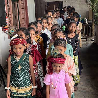 Festivals like Janmashtami and Ganesh Chaturthi are celebrated with devotion and joy. Activities include plays based on Bhagwan Shri Krishna’s life, Matki Fod, bhajans and rituals to honor Bhagwan Ganesha. These festivals bring the community together, preserve cultural values and strengthen the spirit of devotion among all age groups.